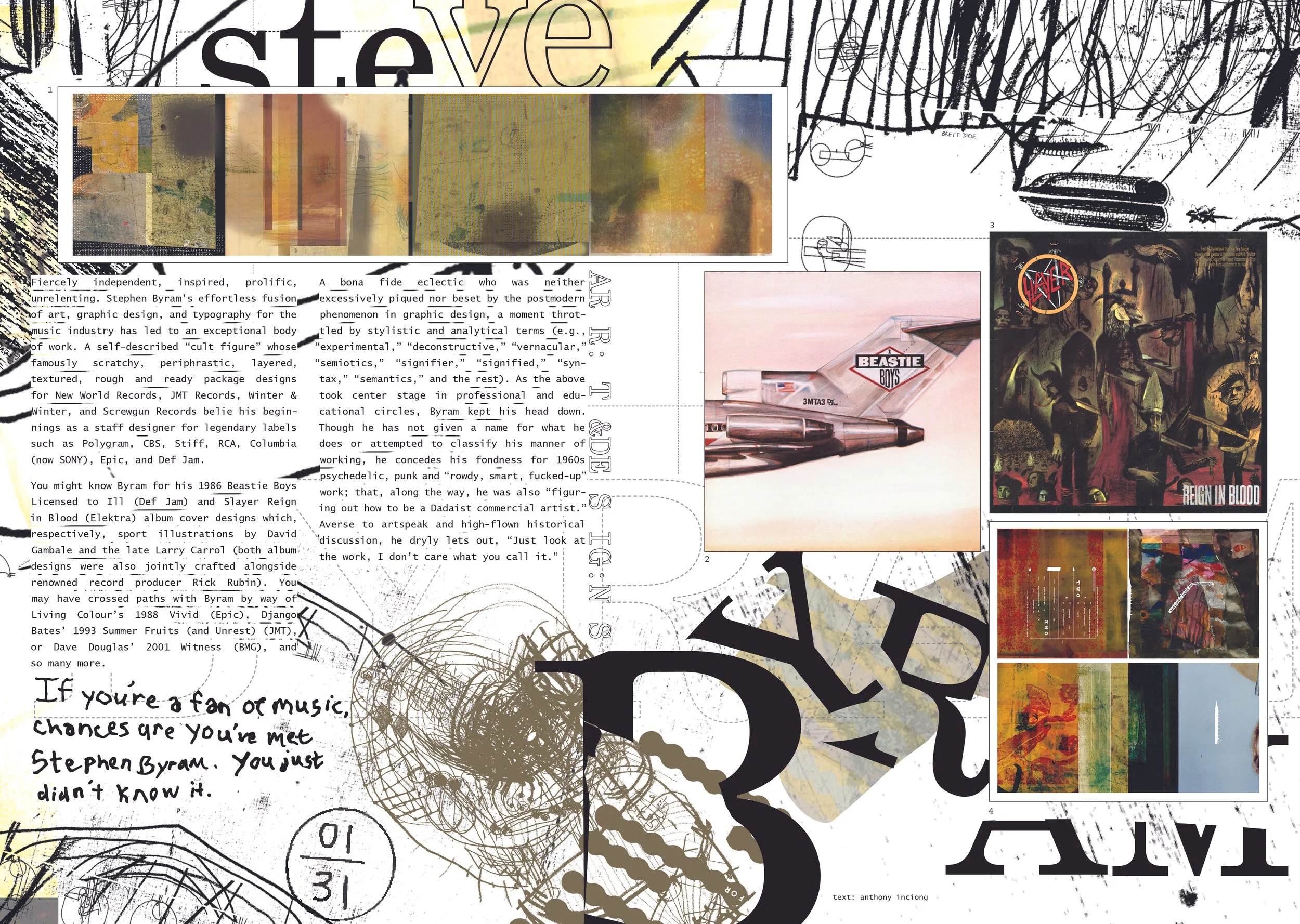 Plastikcomb Magazine is a reputable publication that is centered around collage and design. The layouts are sought to be unconventional with typographic experiments and image play to be a focal point. Myself and 5 other Visual Communication Design students of Montclair State University were invited to work directly with print publication on their seventh issue, where we developed spreads for veteran graphic designer, illustrator, and collagist, Stephen Byram.